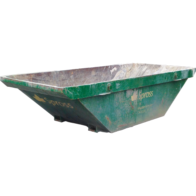 Für die Reinigung von Beton- behältern und Baugeräten Mulde wird nur leer transportiert